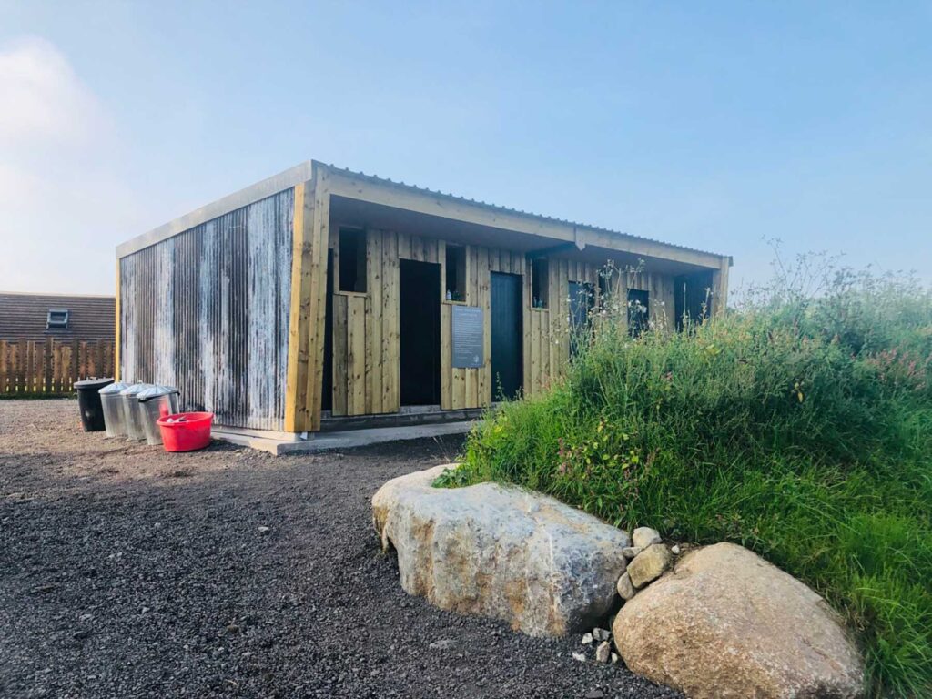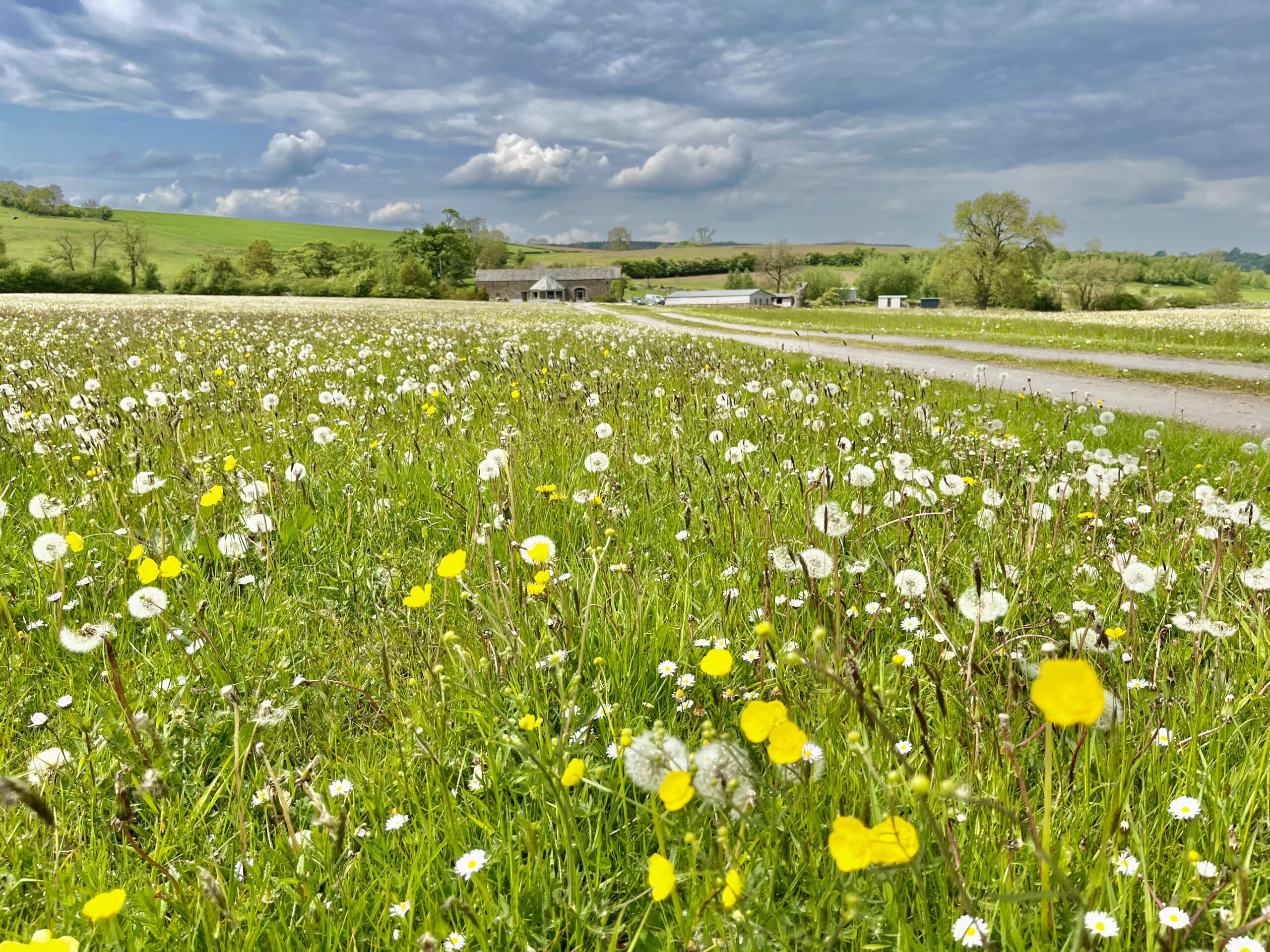 Grass Pitches are adjacent to a hard track. These are just above the camping pods and have lovely views to the west over the meadows and north towards Scotland. Plenty of room for an awning, picnic table, bikes and relaxing. Less than 100 yards to the heated showers/toilets and camp kitchen. The showers and kitchen are off grid. The generator runs for a time mprning and evening.