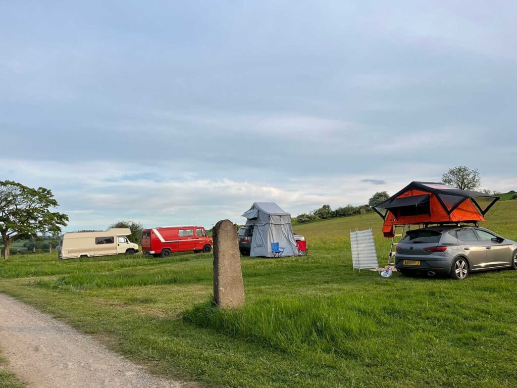 Gravel pitches re up near the farmhouse. With rather gorgeous view down over the farm to the Eden valley and the Pennines. There is grass adjacent to the gravel for awning or more comfortable relaxing space. About 20 yards from the heated shower block and toilets. Also kitchen area with hot water and drinking water.